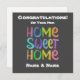 Congratulating a couple or individual on their new home with colourful "Home Sweet Home" text. Other text can be easily changed.