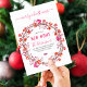 Christmas seasonal botanical wreath with pink and orange holly berries blooms and branches Merry Christmas family greetings postcard from a new home, making an elegant rustic modern holiday moving announcement card. ++++++++ Easy to personalize with your family name, new address, and wishes!