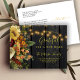 Modern rustic elegant Thanksgiving family moving announcement postcard featuring a beautiful autumn fall floral botanicals bouquet and a gold chic typography script over a dark brown barn wood background.
