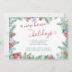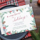 Holiday moving announcement card with handwritten script typography and botanical frame of watercolor winter foliage with pine cones and holly. This double sided design is lettered with "A new home for the holidays" and your custom text on the front and, "merry Christmas" on the back. The template is set up for you to add your new address, sign off and names. An elegant and festive design in shades of red, green and blue.