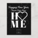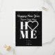 A modern New Home Sweet Home moving announcement card. Featuring a heart shape and "Happy New Year From our New Home" title in hand-written calligraphy typography. Personalized with your message of preference front and back, your new address, and signature