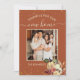 Rustic and elegant family photo holiday moving announcement card with fall flowers ,pumpkin and gold glitter dots print.