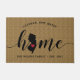 Show some home state pride with this custom doormat featuring "home" in calligraphy script lettering with a silhouette map of the state of New Jersey standing in for the letter "O." A heart illustration inside the state map completes the design; you can change the position of the heart to your home city by opening the design tool and dragging the heart shape to your favorite spot. Personalize with your home city, family name and year established to create a perfect finishing touch for your front door, or a memorable housewarming gift.