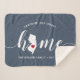 Show some home state pride with this cute rustic blue throw blanket featuring "home" in white calligraphy script lettering with a silhouette map of the state of New Jersey standing in for the letter "O." A red heart illustration inside the state map completes the design; you can change the position of the heart to your home city by opening the design tool and dragging the heart shape to your favorite spot. Personalize with your home city, family name and year established to create a perfect and memorable housewarming gift or addition to your new home.