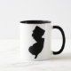The shape of the state of New Jersey in black and white. You can change the background color or add a custom souvenir text message.