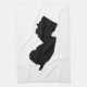 The shape of the state of New Jersey in black and white. You can change the background color or add a custom souvenir text message.