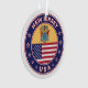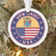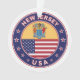 Badge of New Jersey with flag of New Jersey and flag of USA colors, rounded shape.