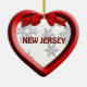 A graphic design of snowflakes in a 3D style red frame on a heart shape New Jersey Christmas ornament. The ornament has text templates for your personalization. ©2012charmainepaulson