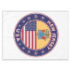 Badge of New Jersey with flag of New Jersey and flag of USA colors, rounded shape.