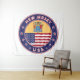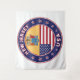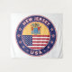 Badge of New Jersey with flag of New Jersey and flag of USA colors, rounded shape.