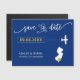 You chose a special place for your wedding. Now it's time to celebrate it with this keepsake save the date magnet card, featuring a silhouette map and a tiny plane headed to your destination. To move the heart to the place of your wedding, click personalize and then "customize further."