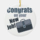 Lightweight, smooth, pure white ornament with nice sheen. Perfect size to be seen from across the room ... and to attract closer inspection! Price was great for ordering enough for the whole family! Clear, bold black design just as requested. Matches the order exactly. Just so nice!