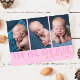 Elegant Christmas theme birth announcement card featuring 3 photos of your baby with a text that says "new life, new light." The background is pink orange.
