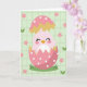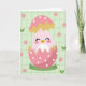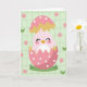 Designed with a soft pastel palette, this illustration centers on a small pink chick peeking out of a cracked salmon-colored eggshell, its closed smiling eyes and rosy cheeks giving it a tender, friendly look 🐣. A tiny orange beak and a slightly raised wing suggest a gentle hello, like it’s greeting someone close with quiet affection. The eggshell is dotted with white spots, and the jagged broken rim is traced with a thin golden line that adds a sweet celebratory touch. Beneath it, a small patch of green grass grounds the scene, like a little meeting place for springtime company 🌷. The background features a pale green grid that feels like a picnic cloth or garden planner, setting an orderly, cozy backdrop. Small coral flowers and simple green leaves are scattered around, as if they were placed there for someone special to notice. There is no text on the design, leaving open space above and around the chick for a message in a soft pastel shade, and the scattered coral blossoms sit lightly across the pale green grid.