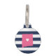 Let your furry friend show some home state pride with this cute New Mexico pet ID tag. Design features a white silhouette map of the state of New Mexico in pink with a white heart inside, on a preppy navy blue and white stripe background. Add your pet's name and contact information to the back in white lettering on a pink background.