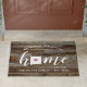 Show some home state pride with this cute rustic faux wood plank doormat featuring "home" in white calligraphy script lettering with a silhouette map of the state of New Mexico standing in for the letter "O." A pink heart illustration inside the state map completes the design; you can change the position of the heart to your home city by opening the design tool and dragging the heart shape to your favorite spot. Personalize with your home city, family name and year established to create a perfect finishing touch for your front door, or a memorable housewarming gift.