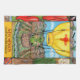 My fun, original, copyrighted artwork with everything New Mexico! An alien with a burrito and bolo tie in a hot air balloon with a zia, floating over mountains, chile fields, desert vistas and the Rio Grande. Bordered with turquoise, what else!