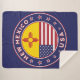 Badge of New Mexico State with flag of New Mexico State and flag of USA colors, rounded shape.