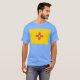 My 11 yo wore adult XL (5’7” 165#). The 8yo is small framed. She wore adult small and tied it in the back. Grandma wore adult large with long sleeve shirt underneath. Tall girl adult medium. Dark haired male adult large. Good quality dark Heather gray, Gildan brand shirt. -it was next up from basic choice and cost about $20 per shirt. Not too thick or thin. Washed and dried well, no major shrinkage. Not see-through. Can wear a bra under it fine. Screen print is just as shown and well done, front and back.