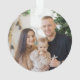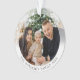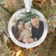 New modern style, double sided, two photo, round acrylic ornament. On the front side, this custom ornament design features your personal photo highlighted in a unique delicate white gradient frame. The designs modern typography displays your family name and the year or can be edited to read anything you like. The text is in a warm bronze color which also can be easily edited to any color of your choosing. The back of the ornament fully displays your second photo. The perfect keepsake gift and tree décor for the holidays & Christmas.