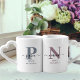 Family monogram mug set for new nana and papa (or established grandparents) which you can personalize with the date they became first time grandparents. This design has elegant handwritten script, modern typography and a subtle color palette of storm blue grey and mauve heather, black and white. One mug has a monogram initial P with the name papa and the other mug has the monogram initial N with the name nana. The template is set up for you to add your custom date and you can edit "since" to "established or est." if you prefer.