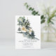 Modern new neck of the woods moving announcement post card featuring watercolor trees on a mountain.