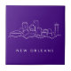 This design features a hand drawn illustration of the New Orleans skyline on a dark background.