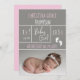 Baby birth stats are an exciting thing to share with family and friends. Announce the birth of your newborn baby girl with this modern design featuring fun and streamlined typography, stylish and mod. Pink, Grey and white colors ready to be personalized with baby's photo, birth statistic information such as birth date, weight, length, and full name.