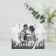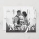 A vintage style script and dark gradient overlays your favorite wedding photo note of gratitude. Use the blank space on back to hand write a personal message to friends and family. This design can be adapted to either landscape or portrait photo layouts.