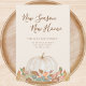 This fall moving announcement features a watercolor pumpkin and autumnal foliage on a cream background. It says "New Season New Home" in stylish script typography. Easily customizable. Original Watercolor © Michele Davies.