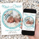 New to the Crew baby birth announcement card, personalized with your photos on the front and back. Nautical design with rope photo frame and captain's wheel in teal and white color palette. You can add baby's name, date of birth and any other birth stats on the front as well as your personalized message on the back.