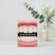 Here is a Dentist business card template in a powerful style with graphic design of a mouth with white teeth and your business or name highlighted by virtue of your name inside the mouth and contrasts nicely to stand out. Presented on our larger business card stock that is wider than standard size for visual impact.
