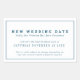 Wedding or event new date sticker. A simple navy blue text on a white sticker. Ideal to place on the outside or on to your existing invitations. Let your guests know that your wedding or other event has been postponed due to unforeseen circumstances. Other matching items are available. Designed by www.mylittleeden.com