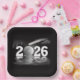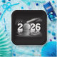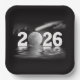 Glowing full moon with a comet on black water reflections New Year party 2026