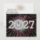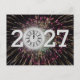 New Year 2027 Fireworks and Moon Clock Postcard