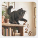 A playful black cat perched on the bookcase is sending the year 2026 tumbling of the bookshelf