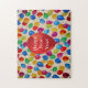 Give friends and family a unique New Year greeting with this 11” x 14” jigsaw puzzle with a vintage image of colorful balloons and ribbons on cream and one larger red balloon with the sentiment “Happy New Year!” See the entire New Year Puzzle collection under the HOME category in the HOLIDAYS section.