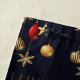 A dark blue towel with a New Year's design. The design includes gold stars, snowflakes, and ornaments, as well as red ornaments. The words "New Year" are written in gold cursive in the center of the towel. The towel is folded at the bottom, revealing a white interior.