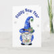 New Year Blue Gnome with Clock Holiday Card