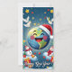 New Year card with the Happy Planet wearing Santa's hat.
