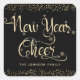 New Year Cheer Black Gold Script Snowflake Glitter Square Sticker