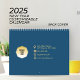 The business calendar designed with watercolor splatter in sandy gold graphic and circle brushes shape in SVG file format with blue color as its background. Key feature of SVG file: ability to mask a photo with its shape provided in the design. Add your own product photo and description as part of your company marketing and advertising campaign. Its contemporary business calendar design template includes phone, email, website, location pin icons; suitable for all type of businesses.