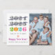 “2024. 2025. 2026." Third time better be a charm.” Sometimes, the new year can’t come quickly enough. And this is one of those years. On the left, a playful visual of modern, bold, graphic multi colored typography overlaying a white background and on the right, your funny family photo, help you usher in the New Year. Multi color, festive doodads overlay white on the back. Feel the warmth and joy of the holiday season whenever you send this simple, stylish, personalized greeting card. Send this to someone special, especially someone with a sense of humor!