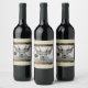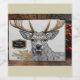 New Year greeting label with reindeer in black, white and gold on a festive background