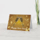 Holiday card shown with a gold stars and ribbon print. Blank Inside