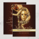 Customizable New Year's Eve party invitation template with festive masquerade ball elegant theme featuring male and female golden venetian Renaissance masks on dark maroon background (color can be changed).