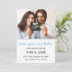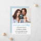 A modern and chic New Year's pregnancy announcement frames your picture in soft pastel blue. Most of the pictures I see show a pregnant couple, an ultrasound or both. Your photo takes up the top half of this pregnancy announcement. A pastel blue line runs below it. The phrase a new year, a new baby is written below in a trendy blue script font. Your baby's name and due date along with your names complete the pregnancy announcement. The back of the card is also soft, pastel blue.