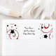 New Year return address labels in classic red, black and white with elegant swirls and stars pattern, the perfect addition to your New Year's cards and envelopes.