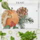 A charming watercolor illustration depicting a festive New Year’s tree adorned with colorful ornaments and twinkling lights, surrounded by fresh mandarins .