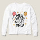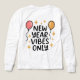 Celebrate the New Year in style with this bold and joyful t-shirt! Featuring the phrase "New Year Vibes Only" with balloons and sparkles, it's perfect for parties, selfies, and good vibes. A great gift or personal treat!